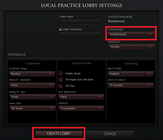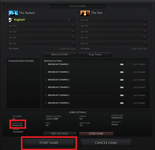 Bersabar untuk menunggu pemain yang lain untuk bergabung, dan bersiap ketika game dimulai oleh HOST game.PERHATIAN :- Saat anda memulai permainan dan game di loading,Dota 2 clinet anda akan tertutup. Hal ini nampak seperti terjadi CRASHED tapi jangan khawatir. Yang anda alami bukan CRASHED tetapi komputer anda sedang melakukan booting Dota 2 64-bit Client dan Workshop Tools anda sedang meloading mini game atau custom game yang akan anda mainkan.