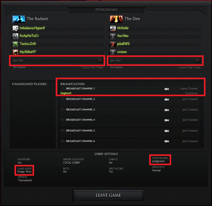 Pilihan Unsubscribe adalah pilihan untuk menghapus custom game. - Setelah anda menbuat local lobby panel setingan yang anda temui tidak jauh berdeda dengan saat anda membuat local game Dota 2.